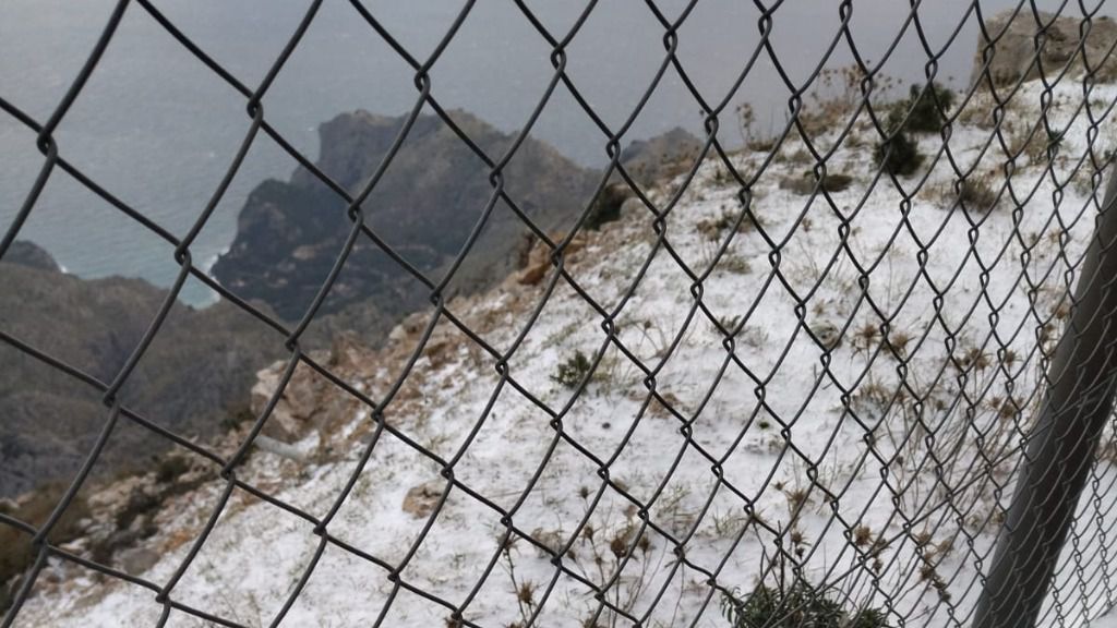 Primera nevada de 2023 en Mallorca. La cima de la Serra de Alfàbia ha amanecido totalmente cubierta por la nieve, tal y como marcaba la previsión de hoy.