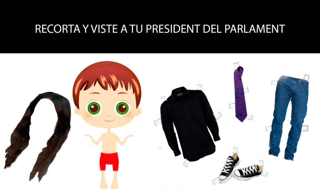 La indumentaria del nuevo president del Parlament no pasa desapercibida en ningún ámbito y menos en las redes sociales. Éste es el jueguecito del 'corta y pega' a Picornell para los actos oficiales: pelucón bíblico, unos buenos vaqueros, corbata morada y zapatillas deportivas Converse negras.