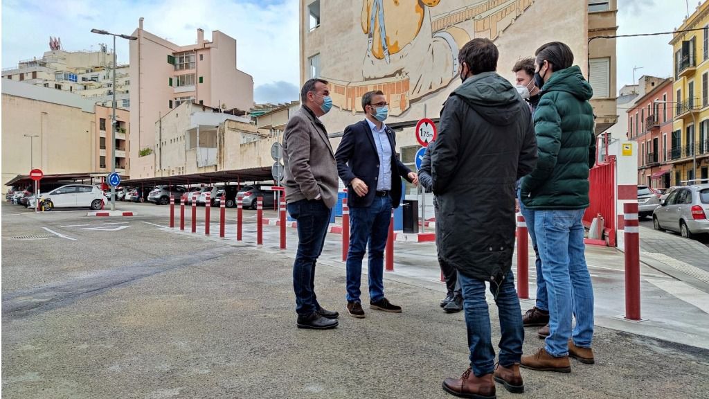 El alcalde de Palma, José Hila; el concejal de Movilidad Sostenible, Francesc Dalmau, y el gerente de la Sociedad Municipal de Aparcamientos (SMAP), Pedro Manera, han visitado este jueves el aparcamiento que se encuentra situado entre las calles Eusebi Estada, Reina Maria Cristina y Comte d'Empúries.