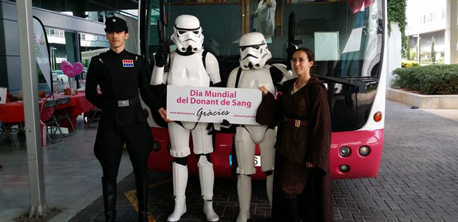 Precisamente con motivo de esta jornada, que se celebrará 14 de junio, el 'Ejército imperial de Star Wars' ha donado sangre en el autobús del Banc de Sang, instalado frente a la entrada de Hospitalización de Son Espases.