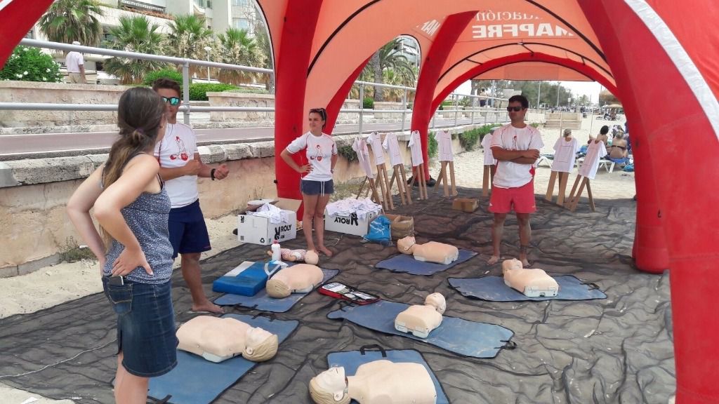 Varios monitores explicaron ayer viernes en Can Pere Antoni y lo harán de nuevo el sábado en Ciudad Jardín las técnicas necesaria para prevenir ahogamientos en entornos acuáticos y a cómo actuar ante una situación de emergencia.