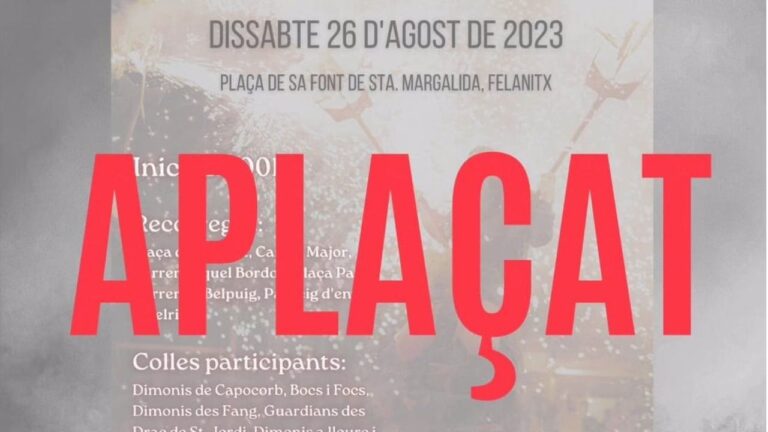 El Ayuntamiento de Felanitx ha tomado la decisión de aplazar la ‘Nit del Foc’, prevista este sábado, 26 de agosto, en el marco de las fiestas de Sant Agustí, por el alto riesgo de incendios en Mallorca. 68