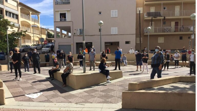 Un grupo de padres del Arenal de Llucmajor ha llevado a cabo un acto de protesta por la por decisión de Salut de concentrar a todos los casos que requieren aislamiento por Covid 19 en un hotel en pleno centro de la localidad. 970