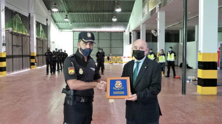El presidente de Asima, Francisco Martorell Esteban, recibe de manos de Fernando Corchero, jefe de brigadas de Seguridad Ciudadana y de José Ignacio Hernández, jefe de sección primera de Seguridad Ciudadana, una placa conmemorativa en agradecimiento a la Asociación de Industriales de Mallorca por “su colaboración y apoyo en las