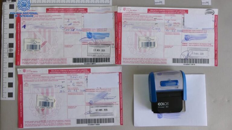 Agentes de la Policía Nacional en la localidad menorquina de Mahón ha detenido una mujer e investigado a su compañera por falsificar recetas tras robar el sello médico a un facultativo. Las dos están acusadas de los delitos de hurto, falsedad documental, usurpación de identidad y estafa.