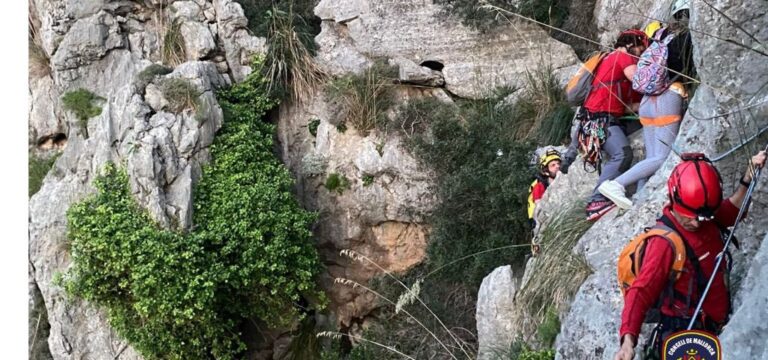Agentes de la Guardia Civil, con la ayuda de efectivos del Cuerpo de Bomberos, rescataron este domingo a una mujer que sufrió un accidente mientras practicaba senderismo en la zona del Torrent de Pareis, en el municipio de Escorca.