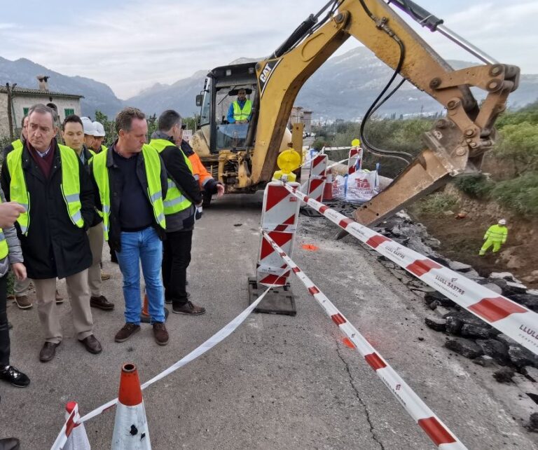 Reabierta la carretera Sóller-Fornalux afectada por el desprendimiento de un muro