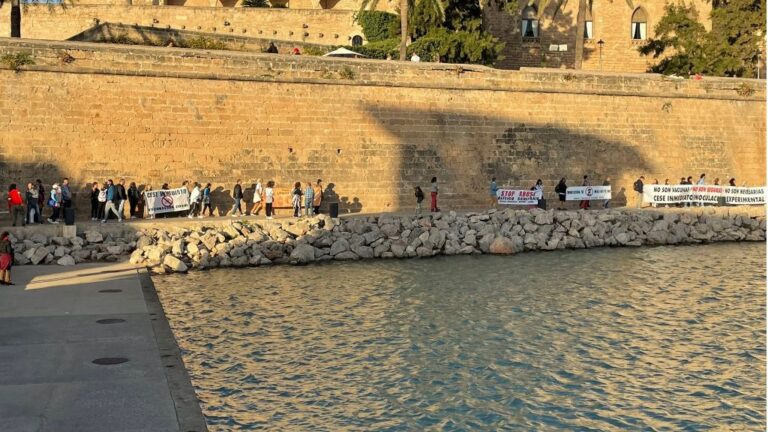 Cerca de 200 personas se han manifestado en la tarde del martes en el Parc de la Mar de Palma exigiendo el fin de la vacunación contra la covid.