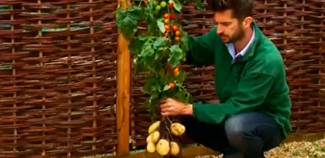 Así, puede obtener alrededor de unos 500 tomates cherry mientras, a su vez, en las raíces van creciendo las patatas.