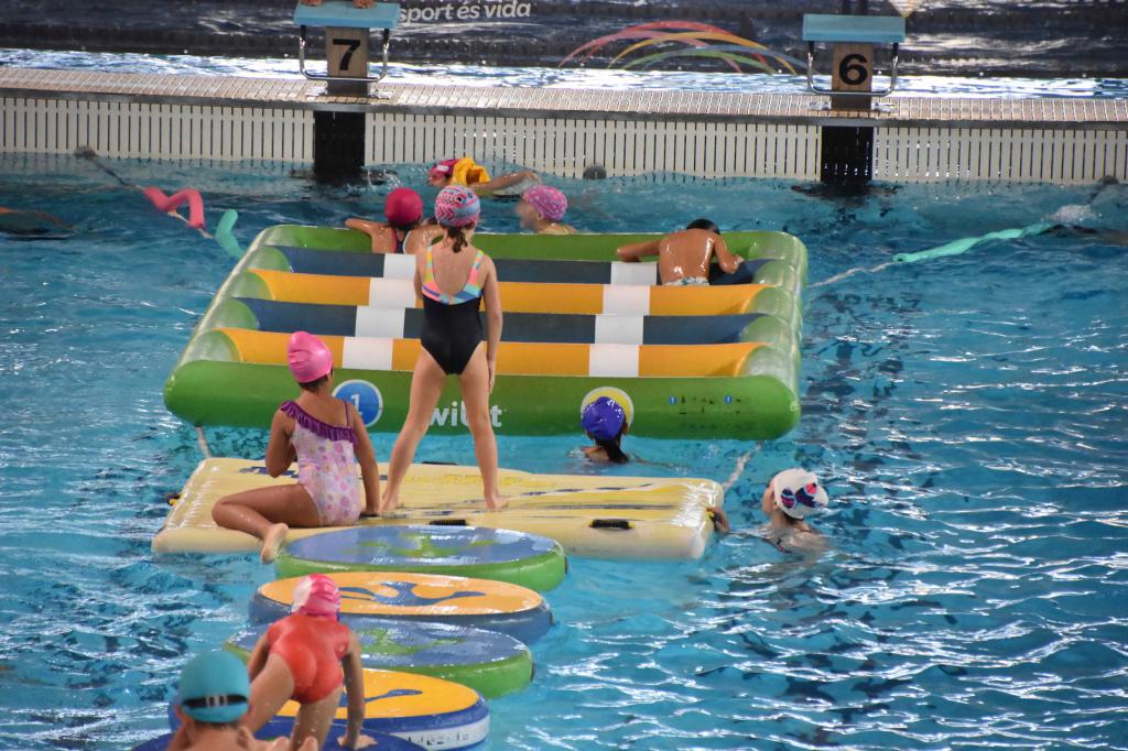 Se ha instalado una composición de varios módulos inflables, toboganes, espacios de equilibrios y obstáculos en la piscina profunda y diversos juegos acuáticos y porterías en la piscina de aprendizaje, apta para los más pequeños.