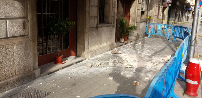 El tramo de la calle ha quedado vetado al paso de peatones, mientras no se decida que vuelve a ser transitable con toda seguridad para todos los peatones.