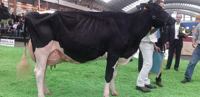 Entre los aspectos que más destacan del ejemplar ganador está su capacidad lechera, ya que me mientras una vaca normal da unos 30 litros de leche al día, Jara aporta el doble.