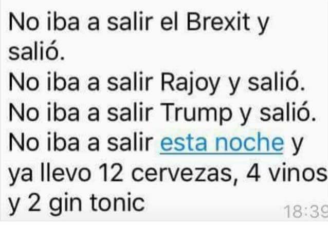 El mundo iba a optar por Clinton, Reino Unido iba a seguir en Europa y España iba a dar un giro tras 4 años de mayoría absoluta pero no, los sabelotodo de la opinión no dieron una. En boca cerrada no entran moscas. Como cuando le dices a tus amigos que esta noche no vas a salir y te dan las 5 con una copa en la mano...