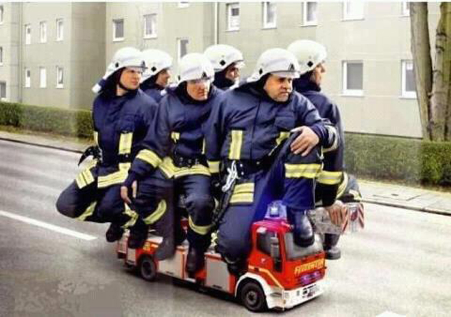 Montaje o no, esta fotografía que circula por la red ironiza a la perfección con los recortes que sufren algunos servicios públicos, como el de los bomberos.