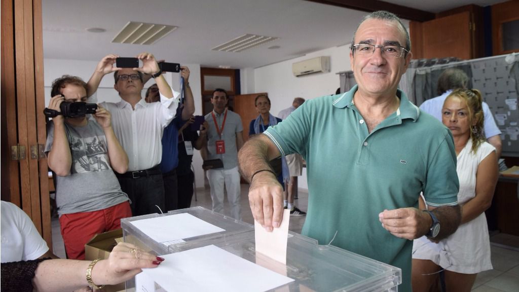El magistrado en excedencia ha sido madrugador en esta jornada electoral del 26J y a las 9.30 horas ha depositado su voto en la escuela de vela de Calanova, donde ha deseado a los miembros de su mesa electoral un día de elecciones "fructífero y provechoso".